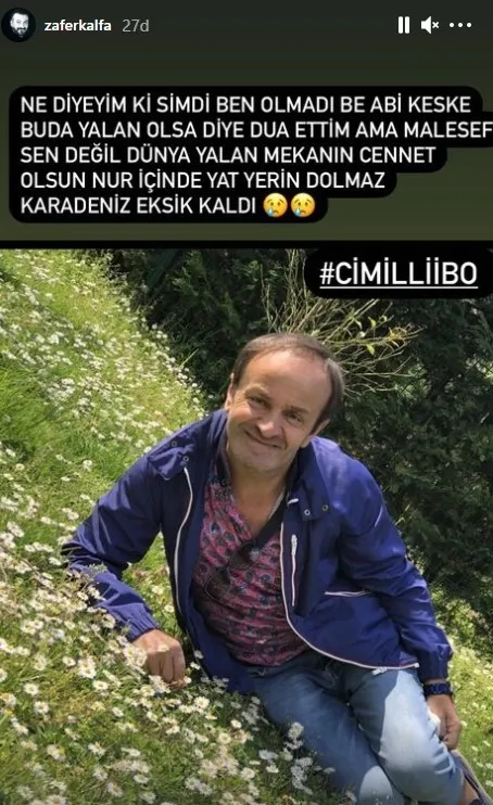 Cenazesi yarın Rize İkizdereden kalkacak olan Cimilli İbo Cimilde defnedilecek. 49 YAŞINDA VEFAT ETTİ. Cimilli İbo vefat haberini Eşkıya Dünyaya Hükümdar Olmaz EDHO dizisinden tanınan ünlü oyuncu Zafer Kalfa duyurdu.