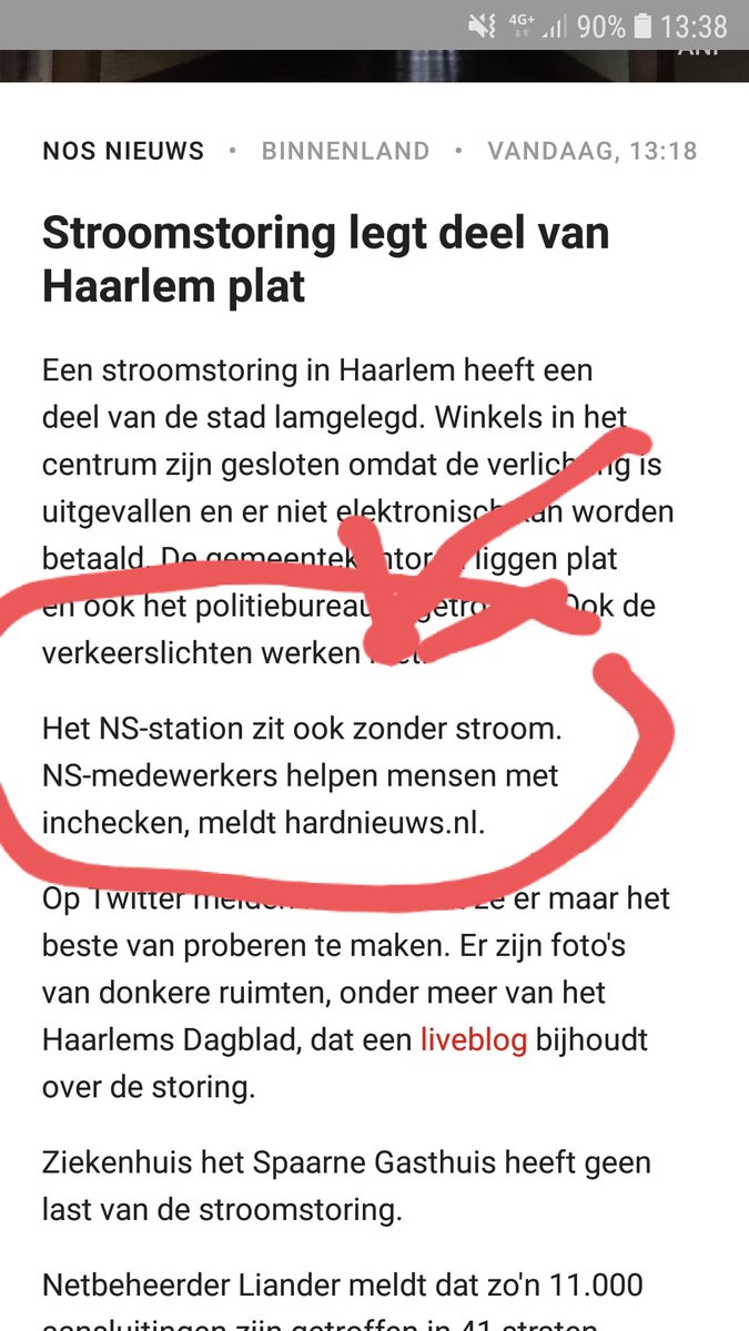 Wij geven een overzicht van actuele storingen in Haarlem. NS-personeel helpen reiziger met het inchecken. Grote delen zitten momenteel dan ook zonder internet telefonie en televisie.